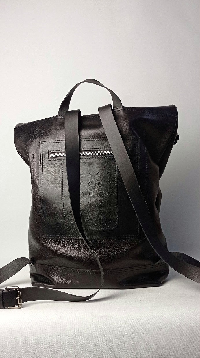 2 bolsillos en el delantero, 1de ellos con fuelle y cierre de seguridad, otros dos bolsillos traseros uno cierra con cremallera metálica y otro superpuesto para smartphones.